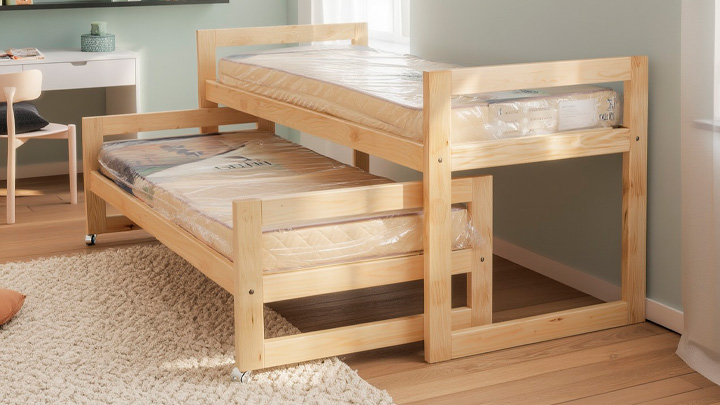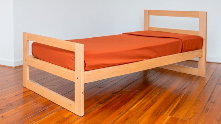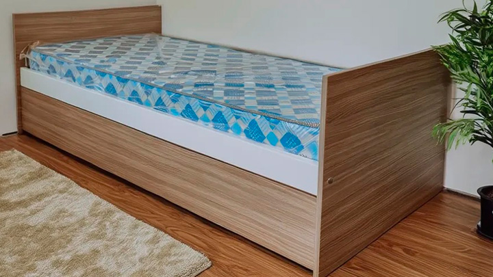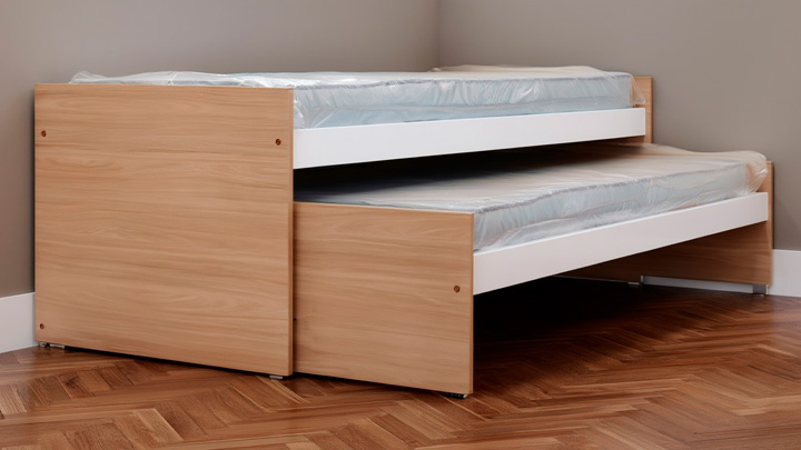 Sofá cama en madera guatambu tela lino anti mancha más carro con colchón